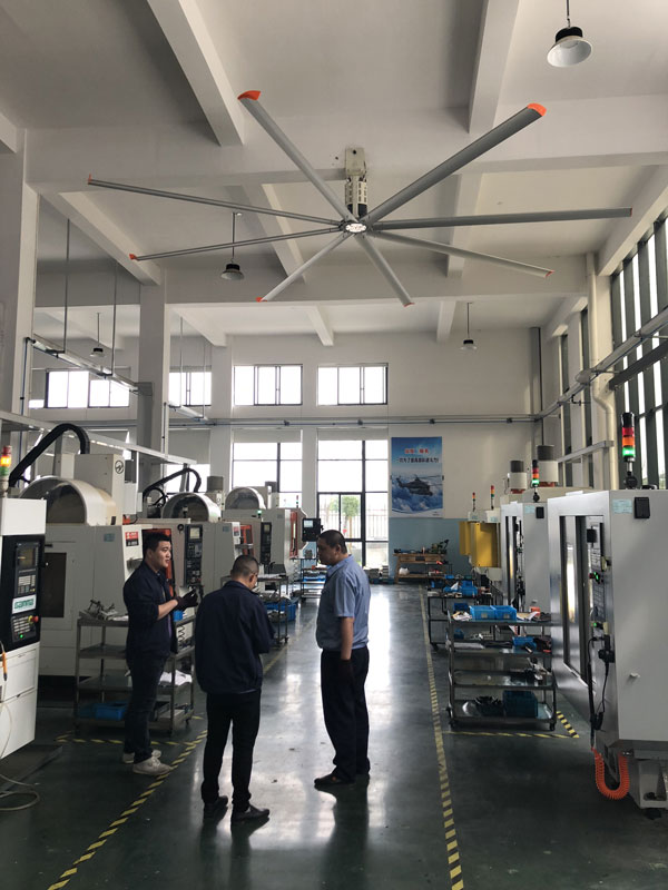 大型工業吊扇直徑達5-7米,功率為1.5千瓦,風力柔和、無噪音,能滿足200-500平方米的室內降溫、通風等要求。